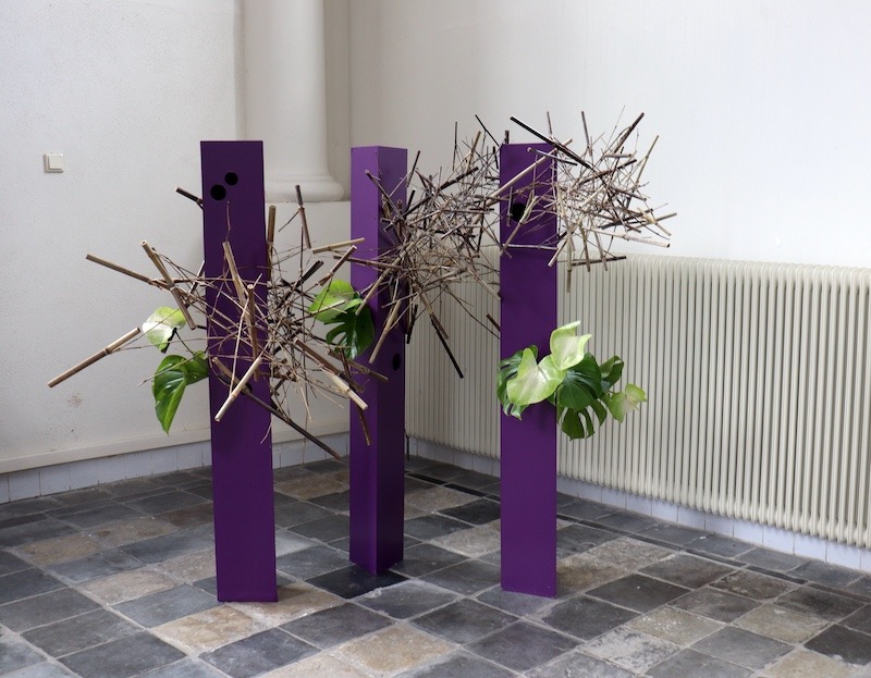 Nineteen students participated in this biennale exhibition. For the fourth time at this unique location in the center of Leur. There were very diverse arrangements to admire. From small subtle arrangements to large group works.